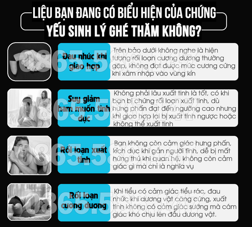 CÓ THỂ BẠN KHÔNG BIẾT nhưng có tới 67% những cuộc hôn nhân bị tan vỡ đều xuất phát từ nguyên nhân do YẾU SINH LÝ. Chưa dừng lại ở đó, có đến 45% nam giới đều phải công nhận rằng mình bị chứng xuất tinh sớm làm phiền mà không biết phải làm sao để đối phó. Đây là hiện tượng không chỉ ảnh hưởng trực tiếp tới chuyện tình cảm, hạnh phúc lứa đôi mà còn khiến cho nam giới rơi vào tình trạng trầm cảm, lo âu, mất đi bản lĩnh phái mạnh.